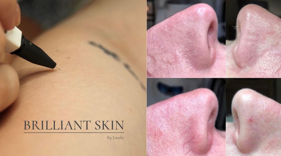 är små ytliga kärl som kan bildas i huden framförallt runt näsan och på kinderna. Dessa bränner vi enkelt bort och det bildas små skorpor som läker fort i ansiktet.